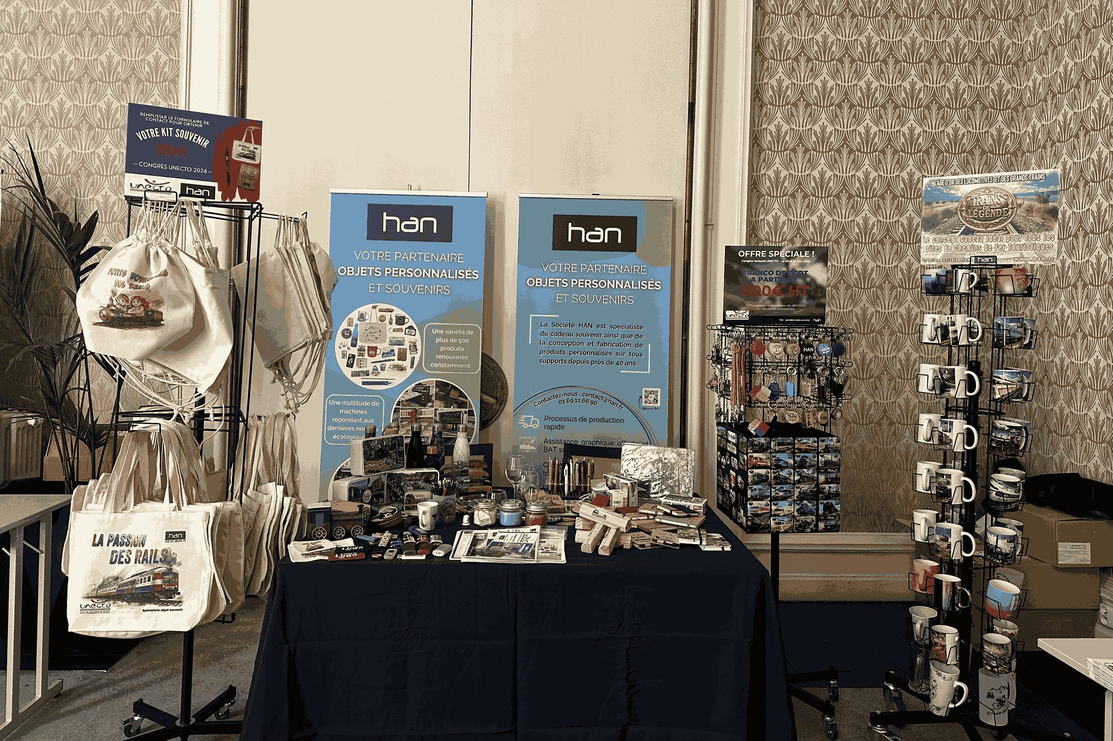 En 2024, nous avons eu le plaisir de participer au congrès UNECTO 2024 organisé à l’Hôtel Le Splendid de Dax, les 28 et 29 novembre 2024. Cet événement marquait notre entrée officielle dans le monde du tourisme ferroviaire en tant que partenaire objets souvenir UNECTO.